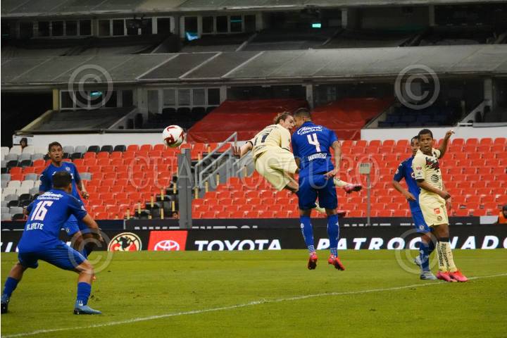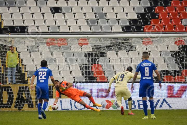 Jesús Corona portero del Cruz Azul ataja un penal de último minuto en el juego ante el América con el que su equipo logró mantener la victoria de 1-0