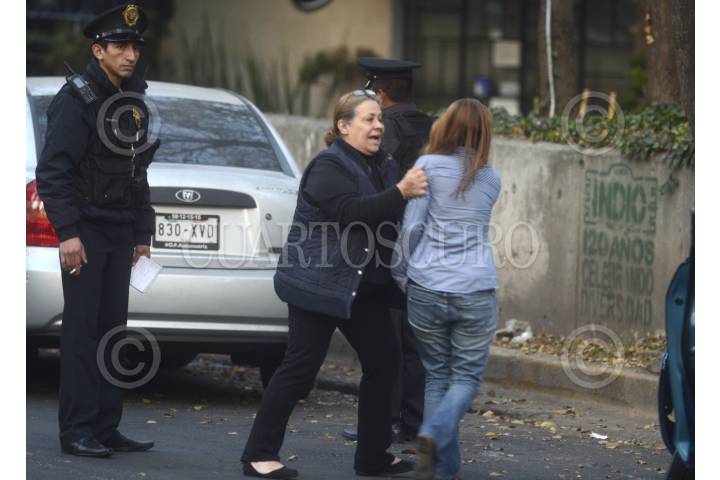 MEXICO, D.F., 25ENERO2014.- María Fernanda Pérez González de 31 años, chocó contra una camioneta en el cruce de División del Norte y Amores, la mujer conducía en estado de ebriedad, en su borrachera se mofo diciendo que por este incidente la iban a llama la "lady de la del Valle". La ciudadana se mostró prepotente y entre insultos a policías, afectados y medios, gritaba que trabaja en el Poder Judicial de la Federación, su madre intento callar sus dichos. FOTO: LUIS CARBAYO /CUARTOSCURO.COM