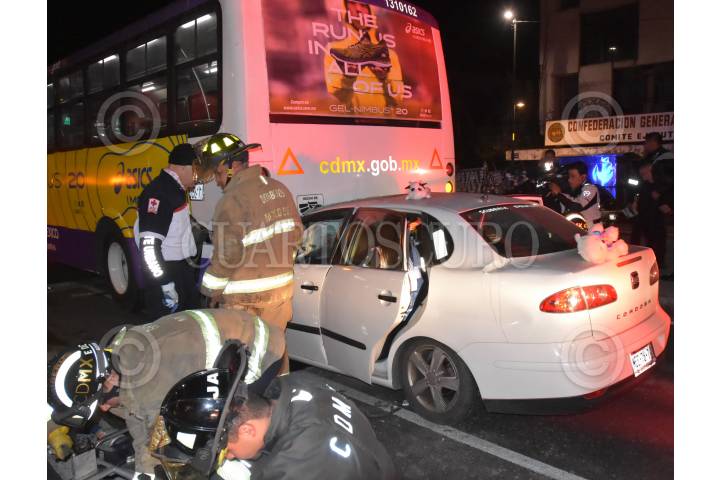 CIUDAD DE MÉXICO, 15FEBRERO2018.- Un mujer de aproximadamente 30 años estrelló su automóvil contra la parte trasera de un camión en la avenida Arcos de Belem y Dr. Vertiz, en la colonia Doctores. La policía que la ayudó a salir de la automotor señaló que estaba en estado de ebriedad. FOTO: ARMANDO MONROY /CUARTOSCURO.COM