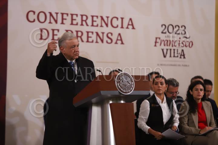 CIUDAD DE MÉXICO, 01NOVIEMBRE2023.- Andrés Manuel López Obrador, presidente de México, en compañía de parte de su gabinete y la gobernadora del Estado de Guerrero, Evelyn Salgado Pineda quien asistió a la conferencia matutina en Palacio Nacional, donde se informa la situación que guarda el puerto de Acapulco, tras el paso del huracán Otis. FOTO: EDGAR NEGRETE LIRA/CUARTOSCURO.COM