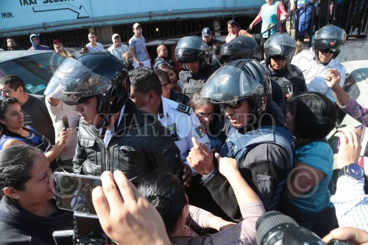 CUERNAVACA, MORELOS, 06DICIEMBRE2017.- Una mujer que pagaba con billetes falsos en el mercado Adolfo López Mateos fue detenida por comerciantes, la oportuna intervención de la policía evito que fuera linchada. FOTO: MARGARITO PÉREZ RETANA /CUARTOSCURO.COM
