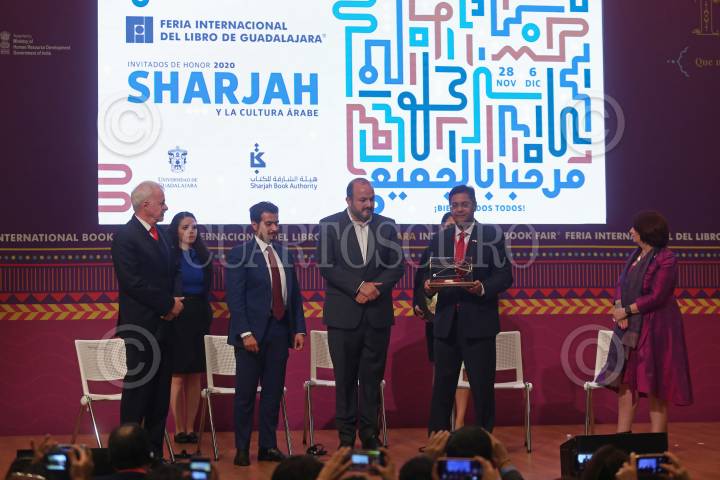 Como parte de las ultimas actividades de la FIL 33, la India sede estafeta a Sharjah país invitado de honor para la Edición 34.