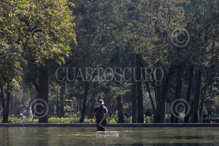 MÉXICO, D.F., 22OCTUBRE2012.- Un hombre limpia con una red el agua de uno de los estanques de agua del Parque Lincoln ubicado en la colonia Polanco. FOTO: ENRIQUE ORDÓÑEZ /CUARTOSCURO.COM