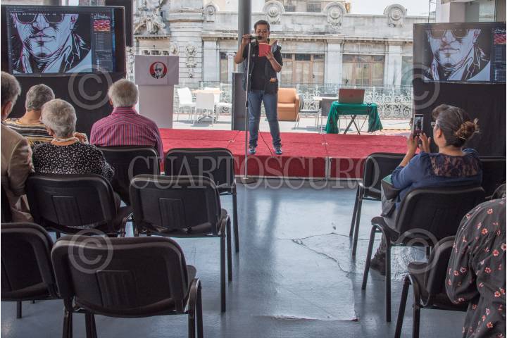 CIUDAD DE MÉXICO, 17JUNIO2017.- Se llevó a cabo el homenaje a Carlos Monsiváis en el Museo del Estanquillo, donde personas realizaron lecturas de diversos textos del escritor, y jóvenes hicieron playeras con el rostro de Monsiváis. FOTO: TERCERO DÍAZ /CUARTOSCURO.COM