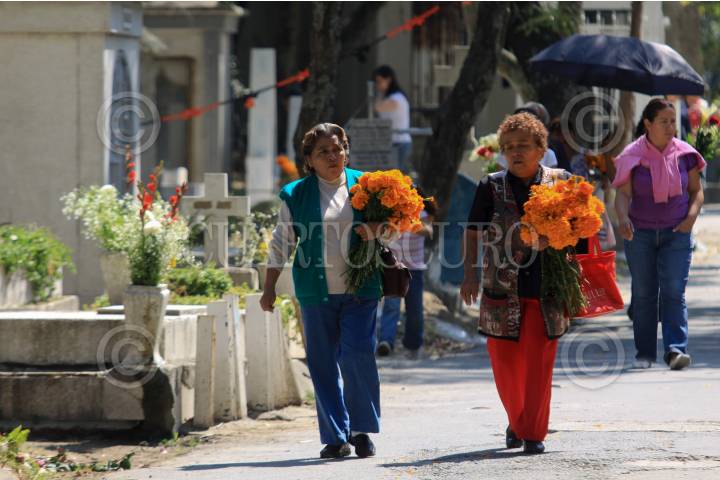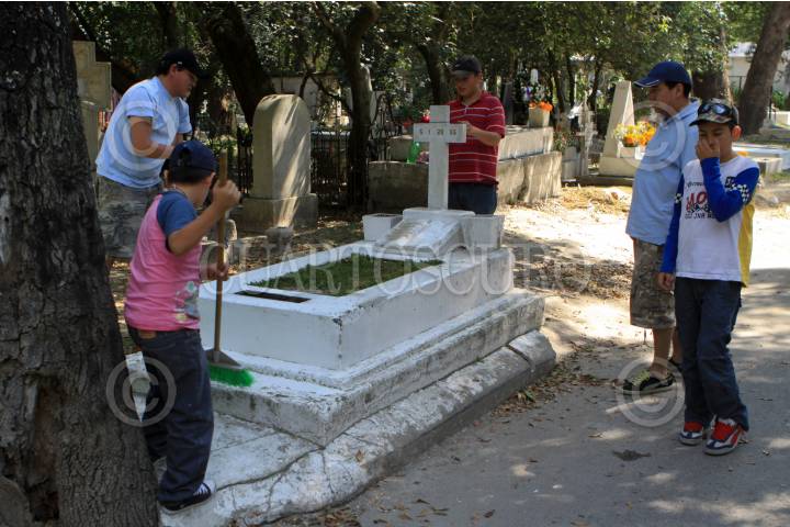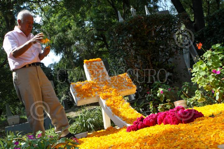 MÉXICO, D.F., 31OCTUBRE2010.- Cientos de personas acuden al Panteón Dolores en el poniente de la ciudad a visitar las tumbas de sus familiares y amigos difuntos en donde estas son limpiadas y adornadas con flores de cempasúchil por motivo de la celebración del Día de Muertos. FOTO: RODOLFO ANGULO/CUARTOSCURO.COM