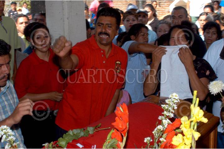 LAZARO CARDENAS, MICHOACAN 22ABRIL2006.- Tras los enfrentamientos, entre trabajadores y elementos de la Policia Estatal y Federal, donde dejo el saldo de dos personas muertas. Hoy se llevo a cabo el funeral de uno de ellos. FOTO: Guillermo Perea/CUARTOSCURO.COM