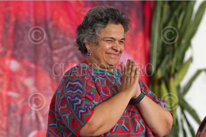 JIUTEPEC, MORELOS, 18OCTUBRE2023.- Claudia Sheinbaum Pardo, Coordinadora Nacional de la Transformación encabezo la Toma de Protesta de Comités de la Cuarta Transformación en el campo deportivo "el Kínder". La acompañaron Ulises Bravo y Mario Delgado lideres estatal y nacional de MORENA. En la imagen Margarita González Sarabia, candidata a Coordinadora Estatal de la Transformación. FOTO: MARGARITO PÉREZ RETANA / CUARTOSCURO.COM
