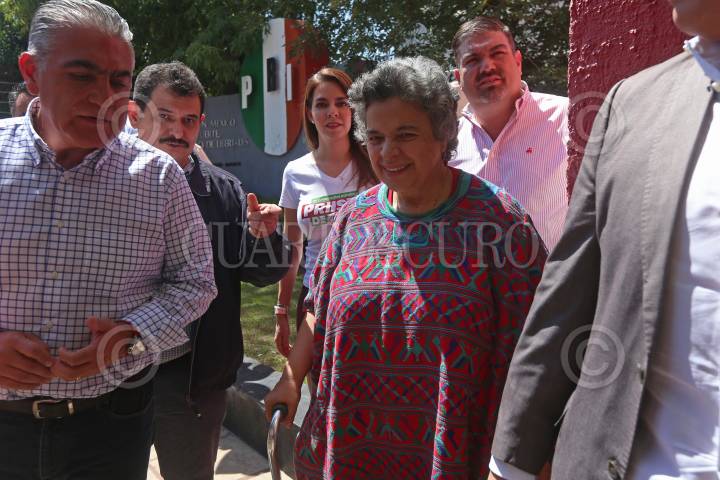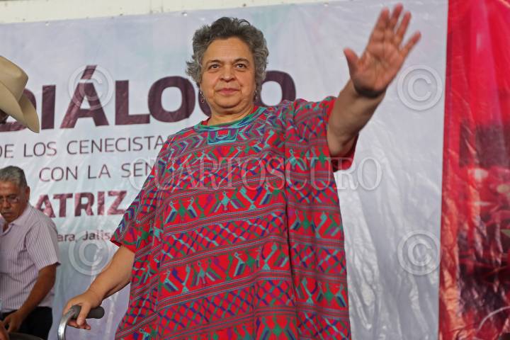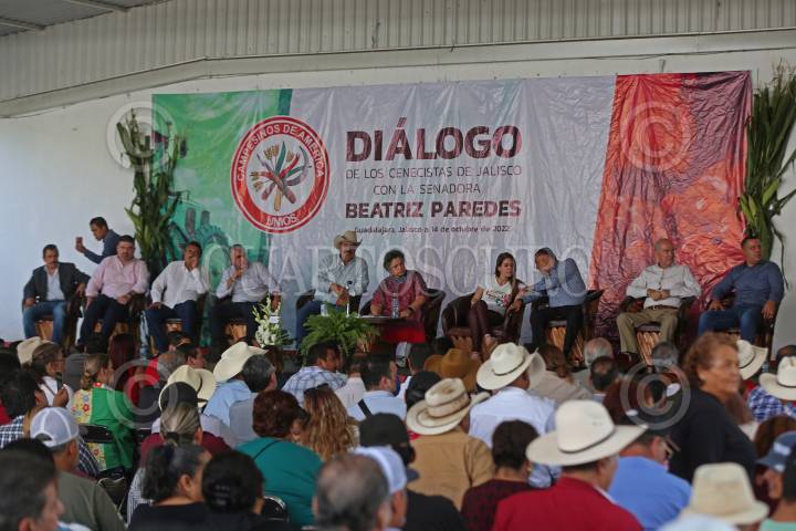La Senadora Beatriz Paredes, durante el dialogo que sostuvo con cenecistas del estado, hoy en las instalaciones del PRI estatal.