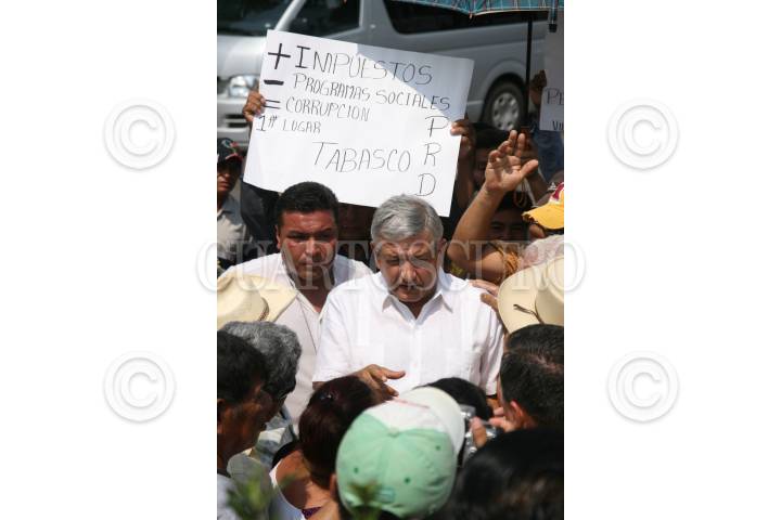 VILLAHERMOSA, TABASCO, 25ABRIL2010.- El auto nombrado Presidente Legitimo de México, Andrés Manuel "El Peje" López Obrador encabezó esta tarde en la capital choca un mitin donde también se les tomo protesta al Comité de Base estatal. El acto político de izquierda tuvo lugar en el parque Plaza de Armas donde se concentraron alrededor de tres mil simpatizantes perredistas ante un incandescente calor de 40 grados centígrados. FOTO: MARCO POLO GUZMÁN HERNÁNDEZ/CUARTOSCURO.COM