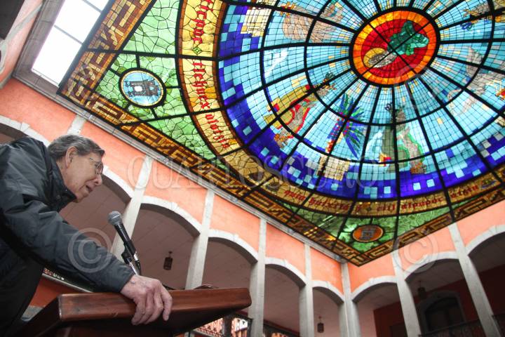 TLAXCALA, TLAXCALA, 16ENERO2016.- Cuaúhtemoc Cárdenas, durante la presentación del proyecto Por México Hoy que se realizó en el patio Vitrales de la Congreso Estatal, en donde expuso ante los asistentes los principios de esta plataforma política que se plantea como una nueva forma de sintetizar y sumar a las diferentes fuerzas políticas del país con miras a la democratización del país. FOTO: J. GUADALUPE PÉREZ /CUARTOSCURO.COM