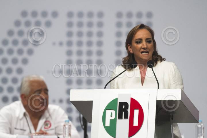 CIUDAD DE MÉXICO, 12AGOSTO2017.- Enrique Peña Nieto, Presidente de México, encabeza la 22 Asamblea Plenaria Ordinaria del Partido Revolucionario Institucional, en el Palacio de los Deportes. Durante los trabajos se votaron cambios a sus estatutos internos, como el de permitir que los candidatos presidenciales no cumplan con la militancia de diez años, como se pedía anteriormente. En la imagen la secretaria general del PRI, Claudia Ruiz Massieu. FOTO: MOISÉS PABLO /CUARTOSCURO.COM