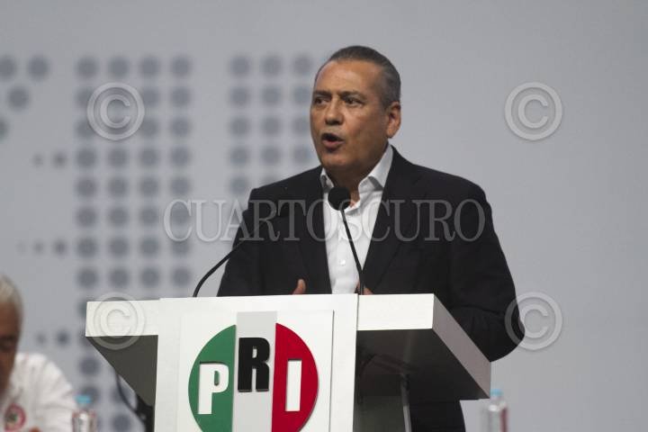 CIUDAD DE MÉXICO, 07JULIO2024.- Integrantes del Consejo Político del PRI aprobaron cambios en los estatutos del partido durante la 24 Asamblea Nacional Ordinaria. El dirigente nacional tricolor, Alejandro Moreno Cárdenas, se excuso de participar en la votación. Estas modificaciones en las reglas del partido abren la posibilidad de que la dirigencia se pueda reelegir hasta el 2032. La convención se realizó a puerta cerrada en el Pepsi Center. FOTO: MOISÉS PABLO/CUARTOSCURO.COM