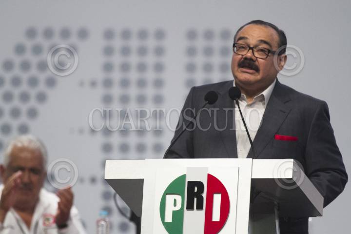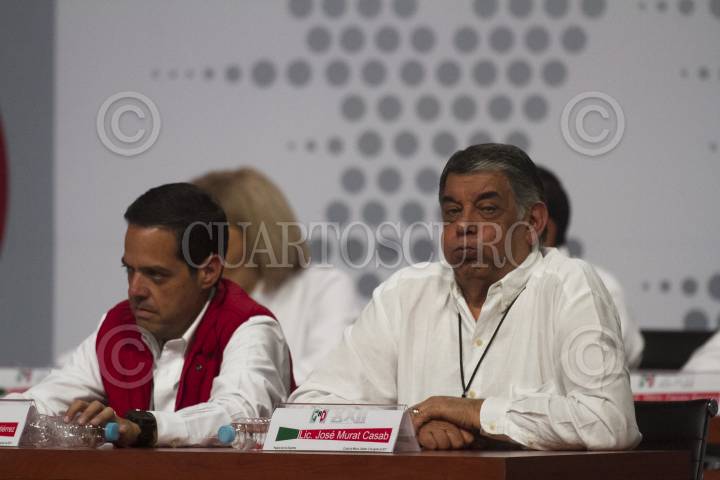 CIUDAD DE MÉXICO, 12AGOSTO2017.- Enrique Peña Nieto, Presidente de México, encabeza la 22 Asamblea Plenaria Ordinaria del Partido Revolucionario Institucional, en el Palacio de los Deportes. Durante los trabajos se votaron cambios a sus estatutos internos, como el de permitir que los candidatos presidenciales no cumplan con la militancia de diez años, como se pedía anteriormente. En la imagen José Murat, integrante de la asamblea. FOTO: MOISÉS PABLO /CUARTOSCURO.COM