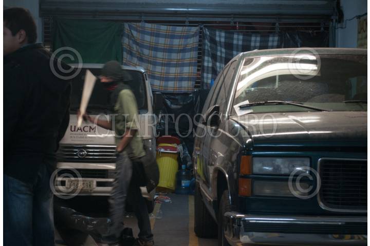 MÉXICO, D.F., 09NOVIEMBRE2012.- Paristas, en su mayoría encapuchados, de la Universidad Autónoma de la Ciudad de México tomaron las instalaciones de la sede administrativa de la UACM ubicada en Eugenia esquina con División del Norte, exigiendo a la rectora de la universidad, Esther Orozco, renuncie a su cargo. FOTO: DIEGO SIMÓN SÁNCHEZ /CUARTOSCURO.COM