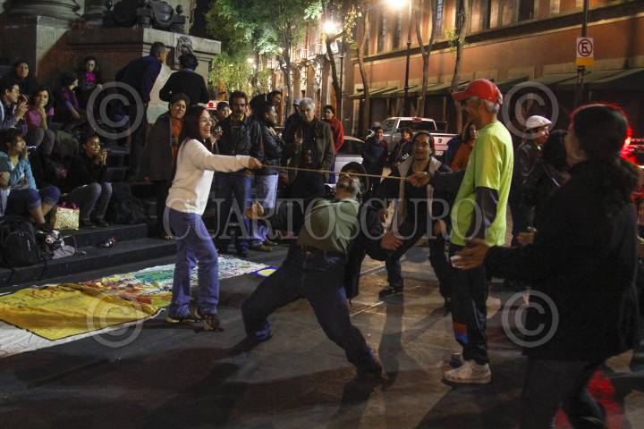 MÉXICO, D.F., 25NOVIEMBRE2012.-Estudiantes, maestros y personas afines al conflicto de la UACM, colocaron un planton por la noche frente a la Asamblea legislativa donde bailaron por varias horas en espera de los resolutivos para los problemas que enfrenta esta casa de estudios. FOTO: ENRIQUE ORDÓÑEZ /CUARTOSCURO.COM