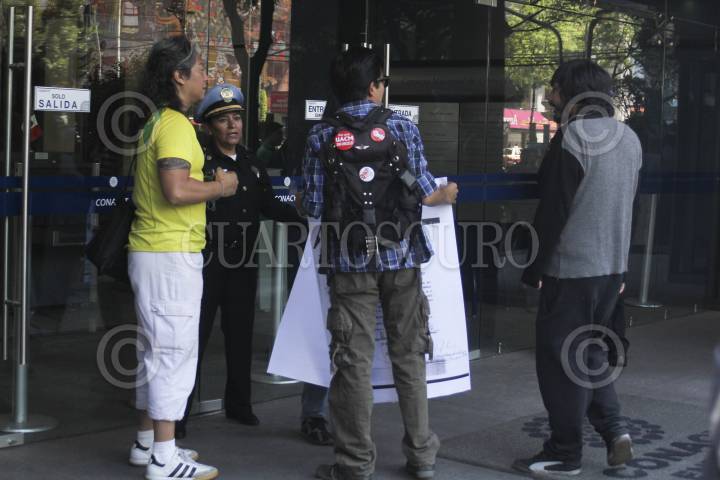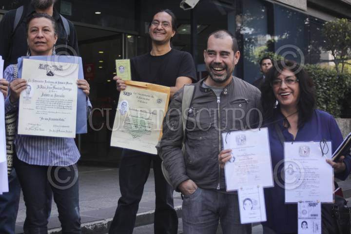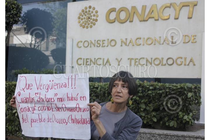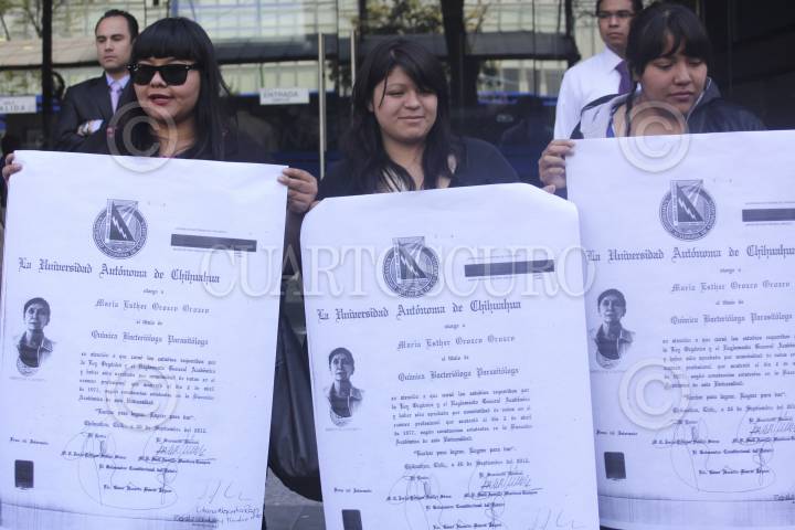MÉXICO, D.F., 13FEBRERO2013.- Maestros y egresados de la UACM, se manifestaron, frente a las instalaciones del Consejo Nacional de Ciencia y Tecnología, mostrando sus títulos profesionales y criticaron que la rectora de la UACM Maria Esther Orozco, recibiera su titulo el pasado 26 de Septiembre del 2012. FOTO: SAÚL LÓPEZ /CUARTOSCURO.COM
