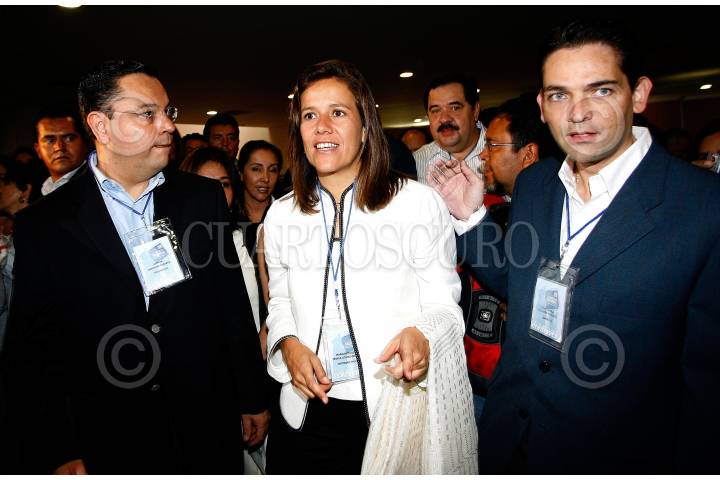 LEON, GUANAJUATO, 26JULIO2008.- German Martinez, Margarita Zavala y Juan Camilio Mouriño al termino de la reunion del Comite de Planeación Estrategica que buscará los triunfos de sus partido en las elecciones del 2009. FOTO. GUSTAVO BECERRA/AM DE LEÓN/CUARTOSCURO.COM