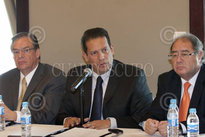 MÉXICO, D.F., 22MARZO2011.- Rene Arce Cirigo, Senador del PRD, Jaime del Río Navarro de Capital, Causas y Libertades y Jorge Carlos Díaz Cuervo, de Proyecto Socialdemócrata, realizaron la presentación de un frente común para el diseño de una agenda estratégica para la Ciudad de México. FOTO: GUILLERMO PEREA/CUARTOSCURO.COM