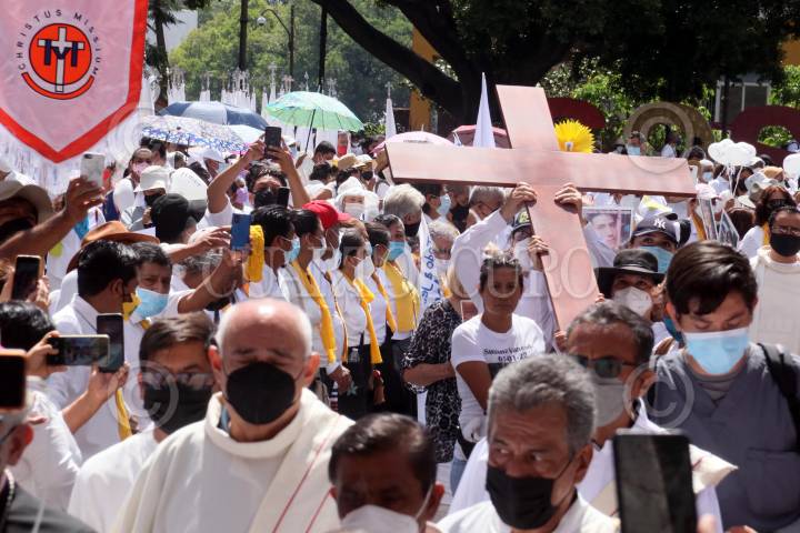 Encabezados por el obispo Ramon Castro, miles de católicos y victimas de la violencia marcharon desde el norte de la cuidad hasta el zócalo, donde lanzo una fuerte critica a la estrategia del seguridad federal.