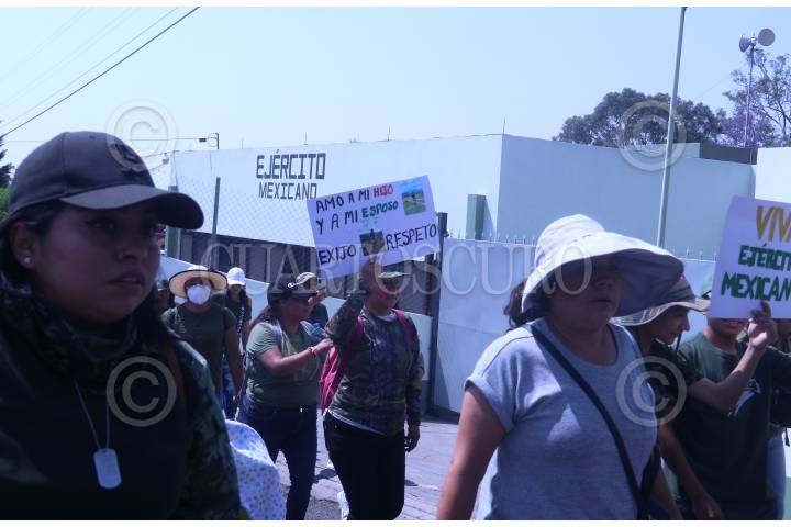 Familiares de soldados del ejército mexicano marcharon este día en Cuernavaca y Cuautla en apoyo a la milicia y rechazo a la estrategia de seguridad federal del presidente Andrés Manuel López Obrador.