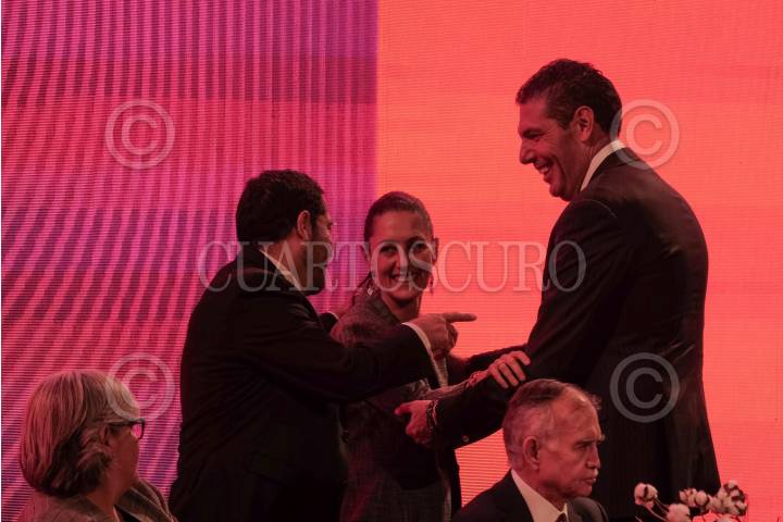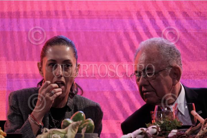 CIUDAD DE MÉXICO, 20AGOSTO2019.- Claudia Sheinbaum, jefa de Gobierno, y Javier Jiménez Espriú, secretario de Comunicaciones y Transporte, durante el "Foro de Estrategias Banorte 2019, el reto social de la banca", el cual se realizó en el Palacio de Minería. FOTO: GRACIELA LÓPEZ /CUARTOSCURO.COM
