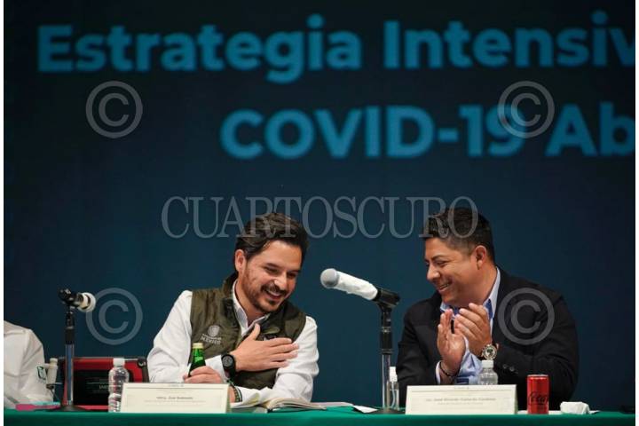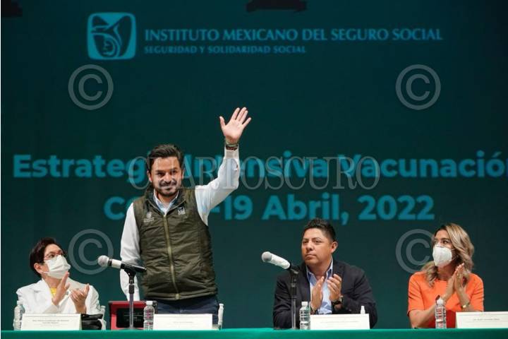 Zoé Robledo, director general del IMSS, y Ricardo Gallardo Cardona, gobernador de este estado, encabezaron el acto “Estrategia de Vacunación COVID-19”, realizado en el Teatro del IMSS en la entidad