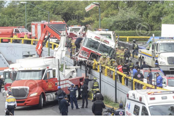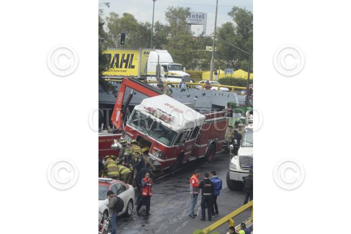 MÉXICO, D.F, 20JUNIO2015.- Tres bomberos resultaron lesionados cuando un camión de bomberos, con el número 0058 se estrelló en Av. Jalisco y calle Marti, en la colonia Tacubaya, cuando acudía al auxilio de una volcadura Tacubaya. FOTO: ARMANDO MONROY /CUARTOSCURO.COM