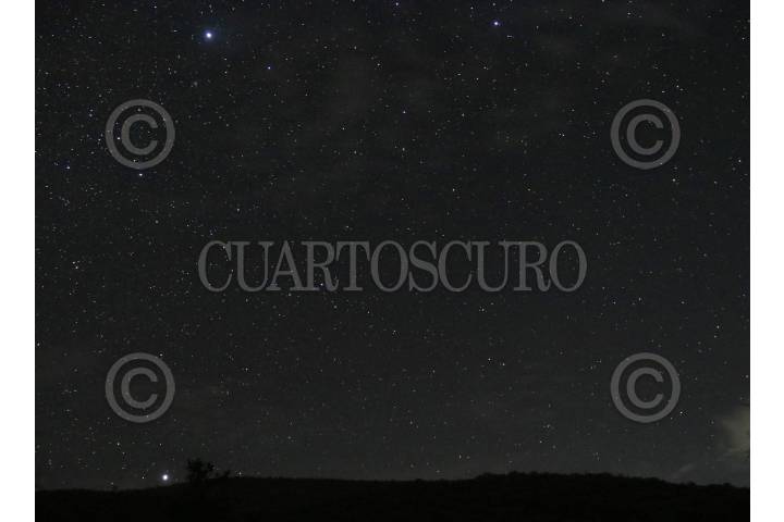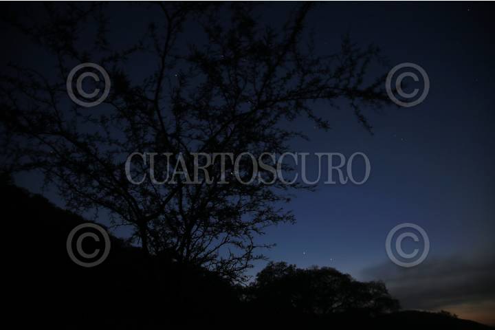 Las estrellas emergen en el horizonte detrás de un mezquite en la comunidad de San Juan Teocalcingo, en Atengo del Rio, Guerrero.