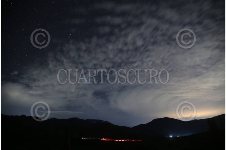 HUITZUCO, GUERRERO, 14DICIEMBRE2023.-El clima nublado impidió ver en todo su esplendor la lluvia de estrellas de las Gemínidas, no obstante, algunos meteoros se pudieron observar surcar entre nubes. Esta lluvia asociada al asteroide Phaethon es uno de los fenómenos más prolíficos del año, ocurre entre el 4 y 20 de diciembre, pudiendo observarse hasta 50 meteoros en una hora. Esta madrugada tuvo su máxima actividad captándose hasta 150 meteoros en ese lapso de tiempo. Estos meteoros son muy brillantes, moderadamente rápidos e inusuales en sus colores, van del blanco, hasta amarillos, rojos, verdes y azules; esto se debe a la presencia de trazas de metales como el sodio y calcio, los mismos que se usan para los fuegos pirotécnicos. La imagen tomada esta madrugada en la serranía del municipio de Huitzuco, en el norte del estado de Guerrero. FOTO: MARGARITO PÉREZ RETANA / CUARTOSCURO.COM
