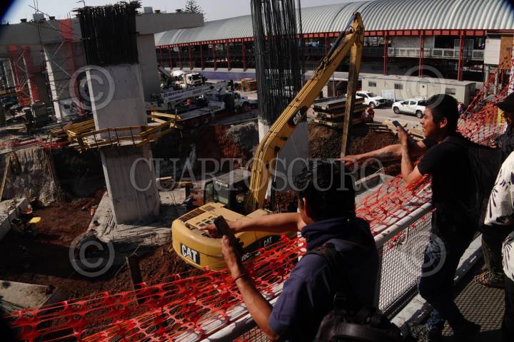 CIUDAD DE MÉXICO, 24FEBERO2024.- Una estructura metálica cayo en la construcción del Trolebús elevado del Centro de Transferencia Modal en los límites de la alcaldía Iztapalapa y el Estado de México. Autoridades reportaron 6 personas lesionadas. FOTOS: ROGELIO MORALES /CUARTOSCURO.COM
