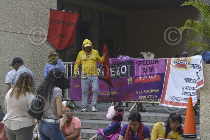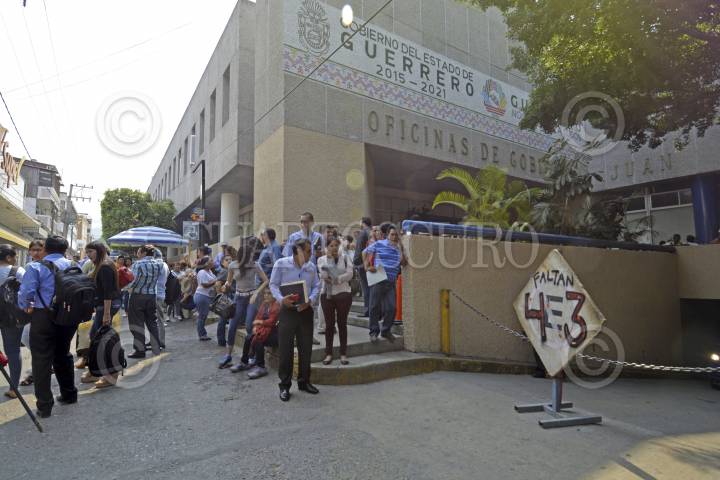 CHILPANCINGO, GUERRERO, 03MAYO2017.- Integrantes de la Coordinadora Estatal de Trabajadores de la Educación en Guerrero (Ceteg) e integrantes de la sección 18 del Sindicato Único de Servidores Públicos del Estado de Guerrero (Suspeg) tomaron el edificio Juan Álvarez de Finanzas del Gobierno del Estado, para repudiar las reformas estructurales y exigir la presentación con vida de los 43 jóvenes desaparecidos de Ayotzinapa. FOTO: JOSÉ I. HERNÁNDEZ /CUARTOSCURO.COM