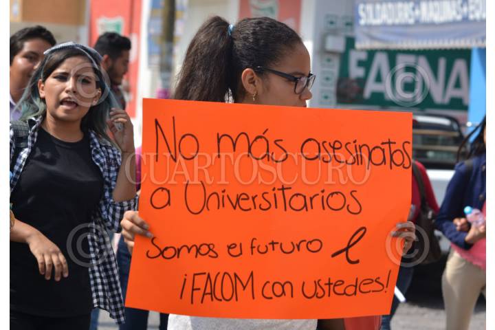 CHILPANCINGO,GUERRERO.25MAYO2017.-Estudiantes de la Escuela Superior de Arte compañeros de Darwin Raymundo Barrientos Miranda quien fue asesinado el pasado miércoles 24 de mayo junto a otra persona cuando viajaban en motocicleta por lateral del Boulevard Vicente Guerrero en las inmediaciones de la colonia Vista Hermosa, la marcha de los estudiantes partió de la avenida Juárez y concluyó en la Unidad de Filosofía y Letra de la Universidad Autónoma de Guerrero donde llevaron a cabo un mitin y exigieron el esclarecimiento del asesinato de sus compañeros “No solo el de Darwin, de todos los estudiantes”. FOTO: JOSÉ I. HERNÁNDEZ / CUARTOSCURO.COM