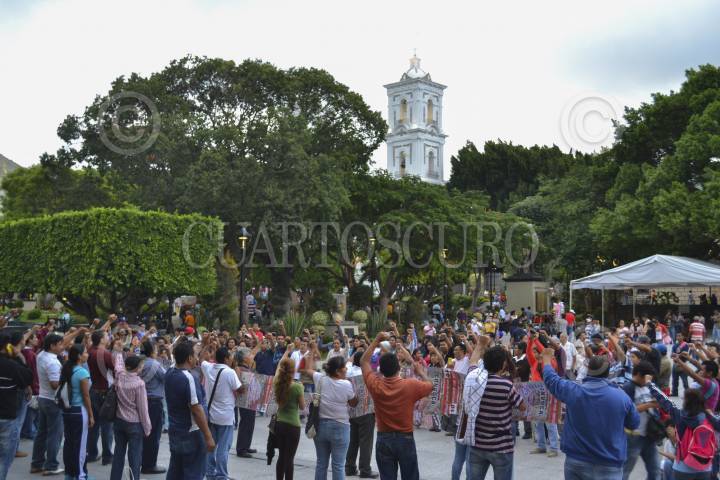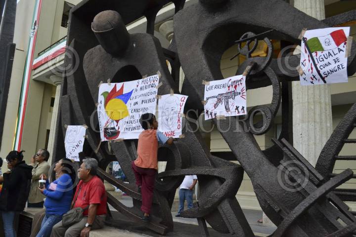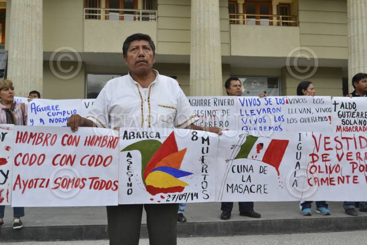 CHILPANCINGO, GUERRERO, 27SEPTIEMBRE2014.- Familiares, profesores, estudiantes de Ayotzinapa y normalistas que integran el Frente Único de Normales Publicas del Estado de Guerrero (FUNPEG) llevaron a cabo un mitin a las seis y media de la tarde en la plaza primer congreso de Anáhuac, en esta ciudad capital, por la agresión que sufrieron estudiantes, civiles y los deportistas alcanzados por el ataque en Iguala. FOTO: JOSÉ I. HERNÁNDEZ /CUARTOSCURO.COM