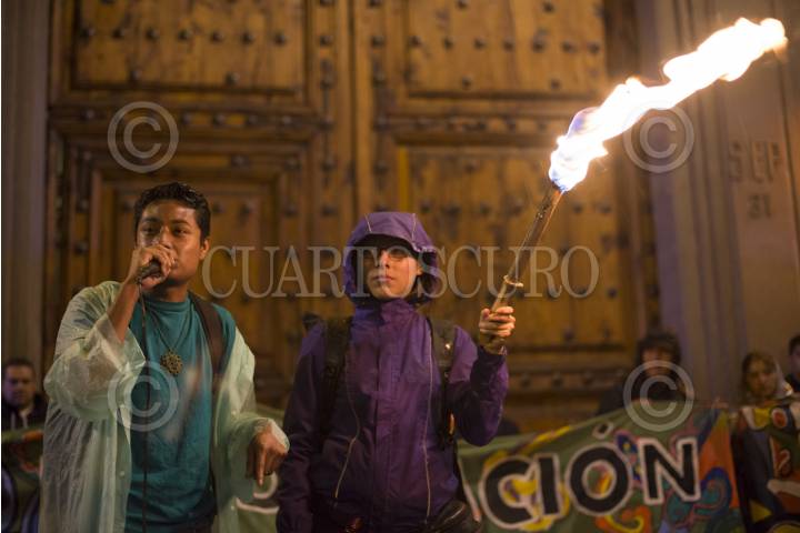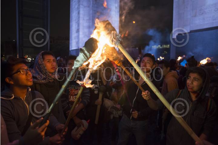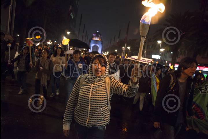 MÉXICO, D.F., 13AGOSTO2014.- Jóvenes participantes del Movimiento de Aspirantes Excluidos de Educación Superior (Maes), marcharon con antorchas del Monumento a la Revolución a la Secretaria de Educación Pública, como parte de sus acciones lucha por un espacio en alguna de las universidades públicas de la ciudad. FOTO: ADOLFO VLADIMIR /CUARTOSCURO.COM