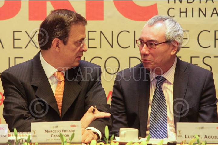 MÉXICO, D.F., 29MARZO2011.- Marcelo Ebrard Casaubon, Jefe de Gobierno Capitalino junto a Luis F. Aguilar durante la inauguracion de la serie de conferencias “Brasil, Rusia, India y China: la experiencia que México debe estudiar”. FOTO: ENRIQUE ORDÓÑEZ/CUARTOSCURO.COM