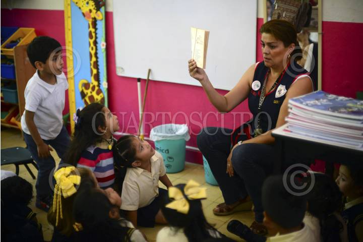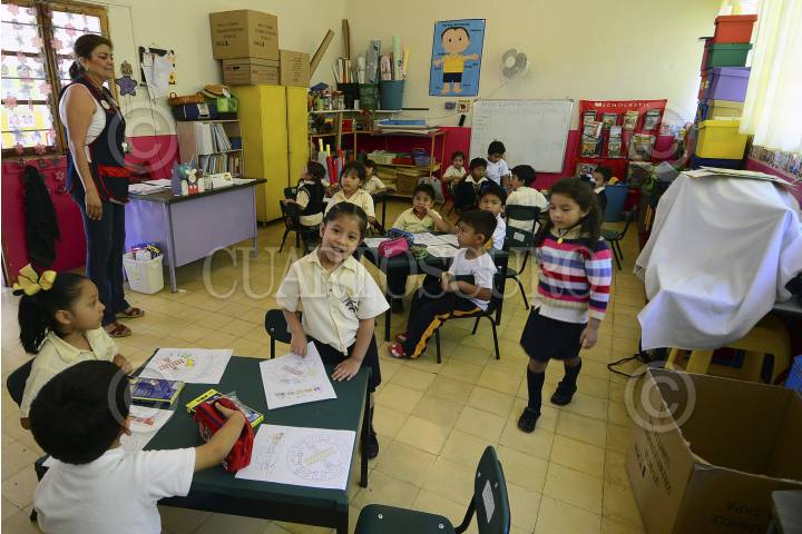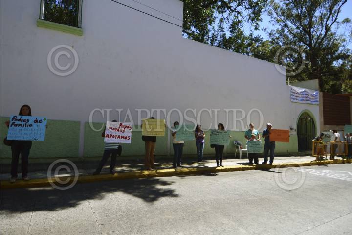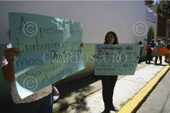 XALAPA, VERACRUZ., 01OCTUBRE2013.- Padres de familia del Jardín de niños Virginia Aguilar apoyan a los docentes contra la reforma educativa propuesta por el Gobierno Federal manifestándose afuera del plantel mientras los maestros imparten clases bajo protesta y en total acuerdo con los padres para interrumpir las clases cuando sea necesario acudir a las manifestaciones. FOTO: RUBÉN ESPINOSA / CUARTOSCURO.COM