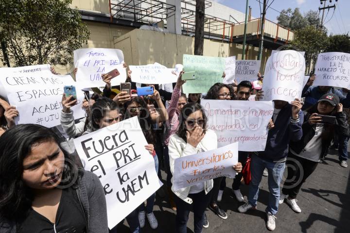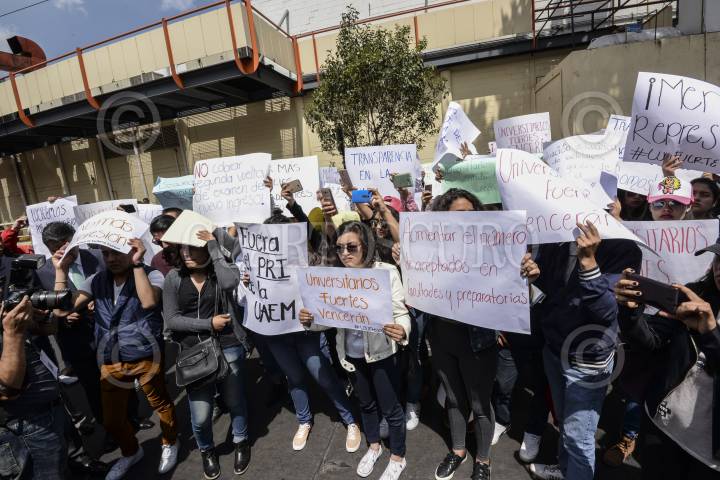 TOLUCA, ESTADO DE MÉXICO, 03MARZO2017.- Estudiantes universitarios se manifestaron durante el Cuarto Informe de Labores del rector de la UAEM, Jorge Olvera García. FOTO: ARTEMIO GUERRA BAZ / CUARTOSCURO.CO