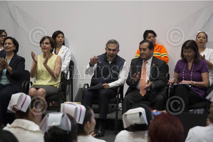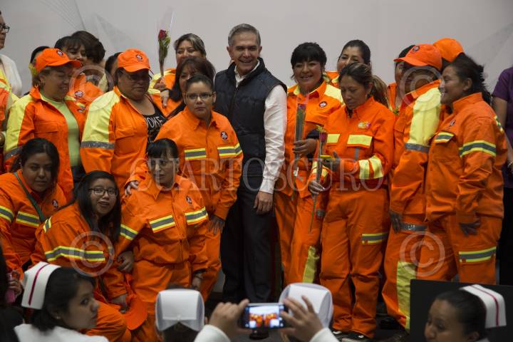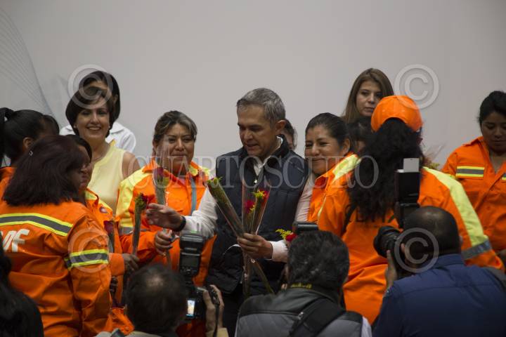 CIUDAD DE MÉXICO, 10MAYO2016.- El Jefe de Gobierno de la Ciudad de México, Miguel Ángel Mancera, encabezó el evento Segunda Etapa de la Nueva Cultura Laboral “Permisos Retribuidos”, donde dio a conocer los nuevos derechos a los que son merecedoras las mujeres trabajadoras y aprovechó para felicitar a quienes fuesen madres. Estuvo presente personal de servicios de limpieza de la ciudad, así como empleadas de la Oficialía Mayor, enfermeras y trabajadoras de Centros de Desarrollo Infantil. FOTO: TERCERO DÍAZ /CUARTOSCURO.COM