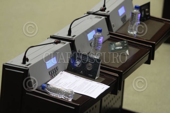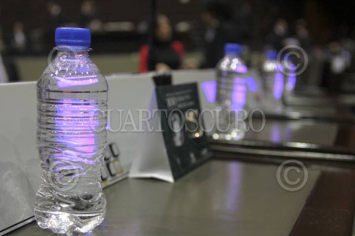 MÉXICO, D.F.10SEPTIEMBRE2013.- Diputados de la LXII legislatura retiraron las etiquetas de las botellas de agua puestas en sus curules, luego de que Martha Lucía Micher, diputada por el PRD, lanzará una crítica por realizar propaganda gratuita a las compañías embotelladoras. FOTO: JUAN PABLO ZAMORA /CUARTOSCURO.COM