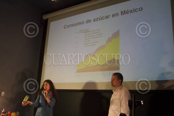 MÉXICO, D.F., 22ABRIL2014.- Xaviera Cabada nutrióloga y Alejandro Calvillo, Presidente del Poder del Consumidor, dieron a conocer que el etiquetado de las bebidas gaseosas no es claro, y contraviene las recomendaciones internacionales y de Estrategia Nacional contra la Obesidad y Diabetes. FOTO: GUILLERMO PEREA /CUARTOSCURO.COM