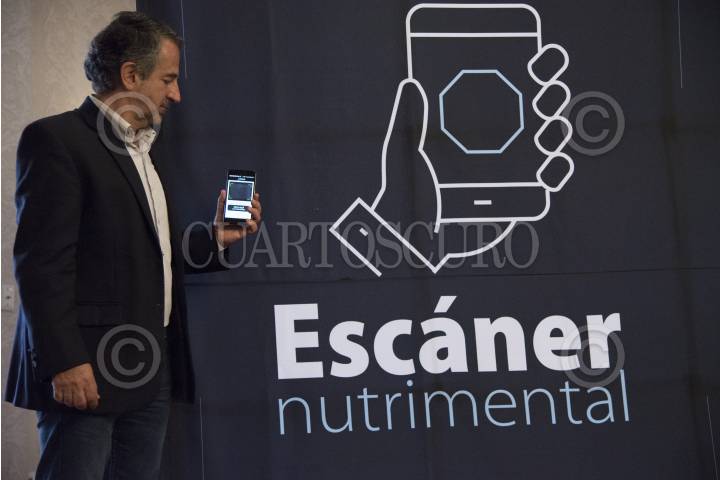 CIUDAD DE MÉXICO, 01AGOSTO2017.- Alejandro Calvillo, director de El Poder del Consumidor (EPC), presentó la aplicación móvil “Escáner Nutrimental” la cual funciona escaneando el código de barras de los productos para arrojar un etiquetado que mida la cantidad de azúcares, grasas saturadas, calorías y sodio, para la fácil lectura en materia de nutrición. El lanzamiento de la aplicación es gratuita y cuenta con una base de datos de 2 mil productos que incrementará con la interacción con el consumidor. FOTO: MARIO JASSO /CUARTOSCURO.COM