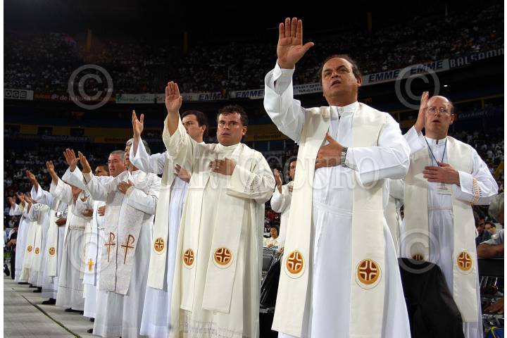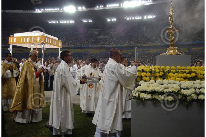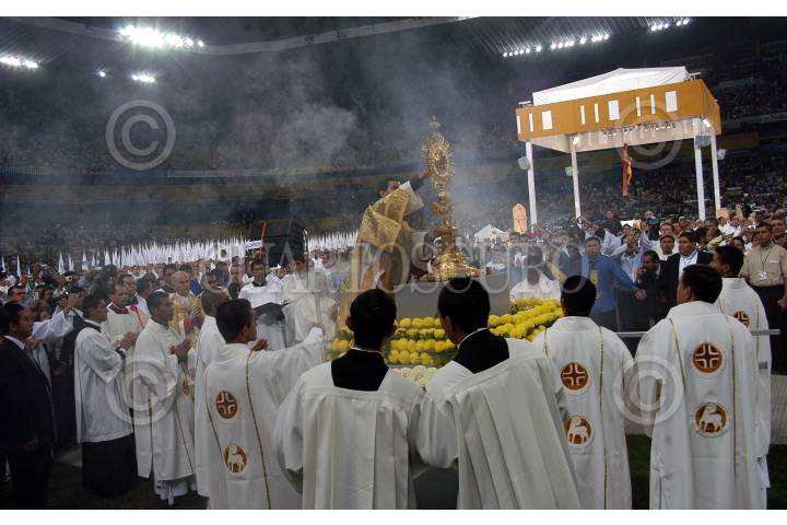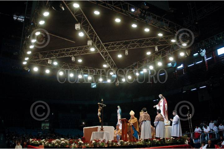 GUADALAJARA, JALISCO 10OCTUBRE2004.- En la cancha del estadio, se celebró la ceremonia inaugural del XLVIII Congreso Eucarístico Internacional, decenas de religiosos participaron el evento litúrgico. FOTO: Germán Romero/CUARTOSCURO.COM