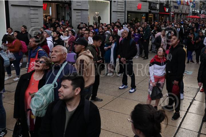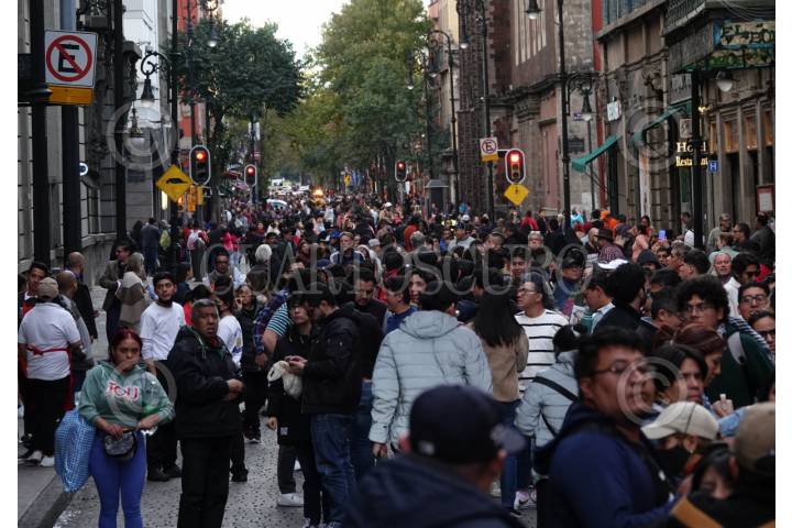CIUDAD DE MÉXICO, 17FEBRERO2024.- Capitalinos evacuaron los edificios en la Zona Centro de la ciudad tras activarse la alerta sísmica. El epicentro fue registrado en Guerrero con una magnitud de 5 grados. FOTO: GALO CAÑAS/CUARTOSCURO.COM