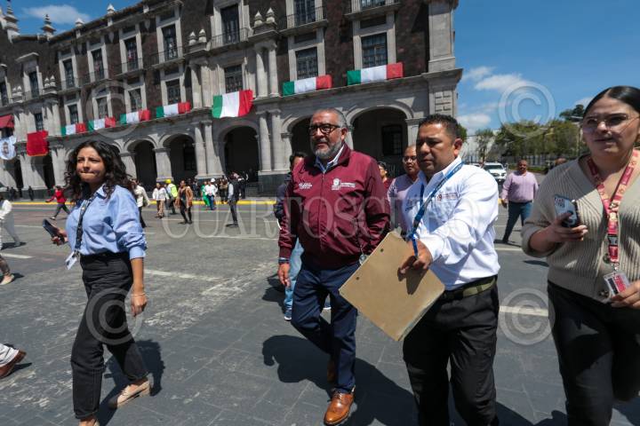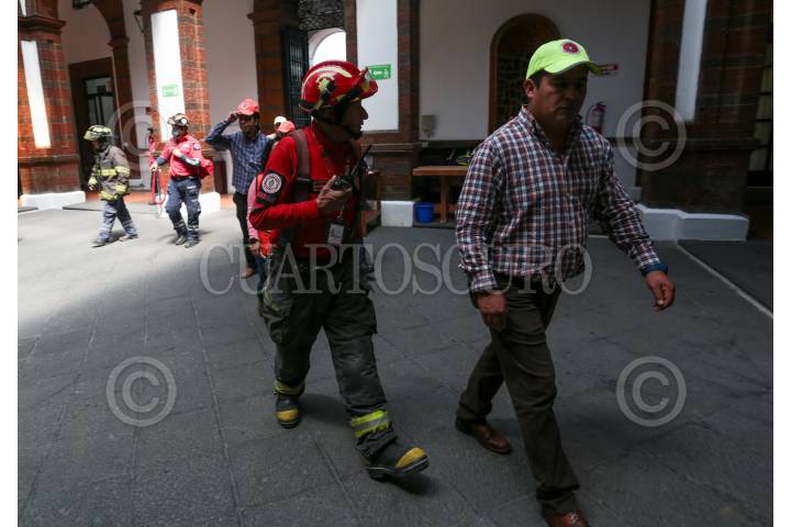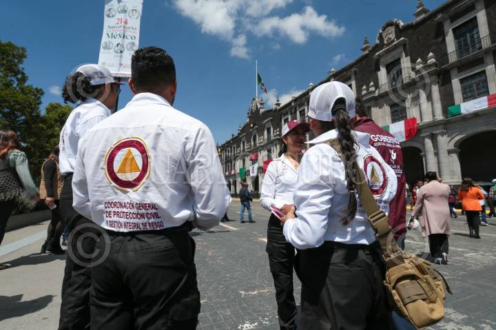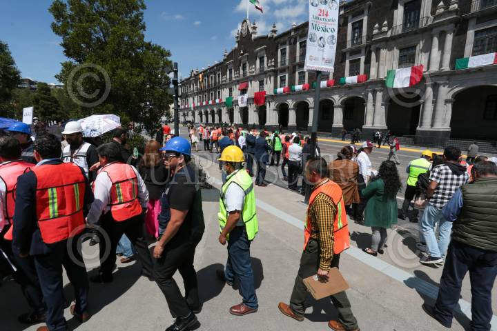 TOLUCA, ESTADO DE MÉXICO, 29ABRIL2025.- En la capital mexiquense se participó en el Primer Simulacro Nacional 2025, con hipótesis de un sismo de magnitud 8.1 con epicentro en Tehuantepec, Oaxaca, lo principales edificios como Palacio de Gobierno, Cámara de Diputados, Poder Judicial del Estado de México y el Ayuntamiento de Toluca, elementos de PC, bomberos y brigadas de PC realizaron el desalojo de edificios así como la revisión de las instalaciones. FOTO: CRISANTA ESPINOSA AGUILAR /CUARTOSCURO.COM