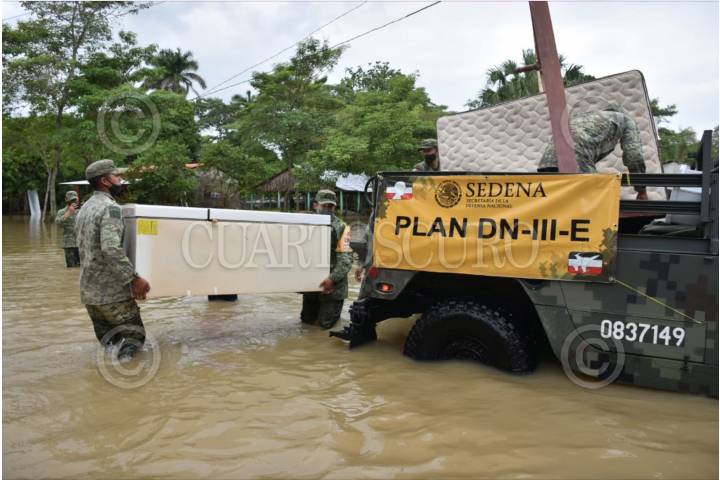 El Ejército Mexicano y la Fuerza Aérea Mexicana continúan aplicando el Plan DN-III-E ante las inundaciones en Tabasco, beneficiando a más de 80,000 personas.
