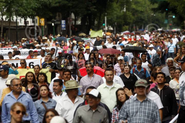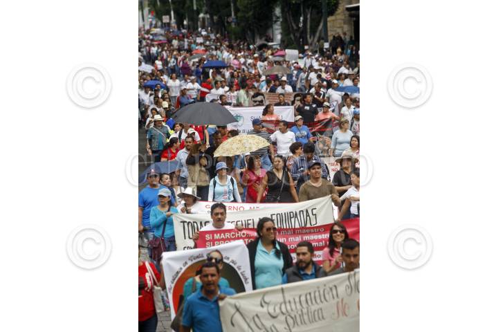 15JULIO2015.- Miles trabajadores docentes marcharon por las principales avenidas de la zona metropolitana, saliendo de la Plaza Juárez a Plaza de la Liberación y haciendo escalas en el PRI estatal, las instalaciones de una televisora, Gobierno del estado y finalizaron en el Congreso del Estado, esto con la finalidad de mostrar su inconformidad a ser evaluados como lo estipula la nueva Reforma Educativa. FOTO: FERNANDO CARRANZA GARCIA / CUARTOSCURO.COM
