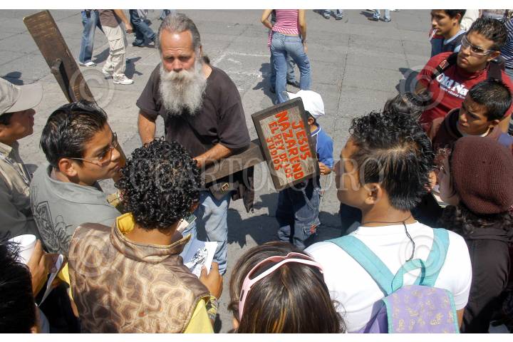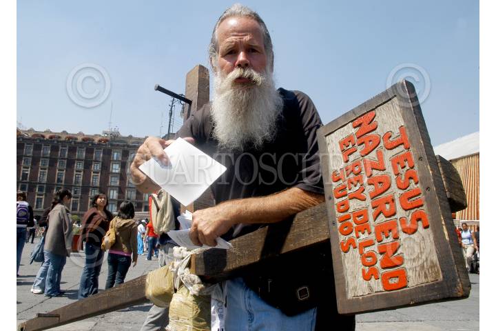 MÉXICO, D.F., 23FEBRERO2008.- Edward Andre Stagl, viaja por las calles del Zocalo Capitalino predicando la palabra del Señor y asuegurando que Jesus el Cristo Vive. FOTO: HERMES QUETZALCOATL/CUARTOSCURO.COM
