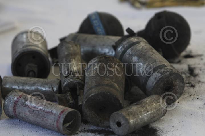 NOCHIXTLÁN, OAXACA, 07JULIO2016.- Maestros de la sección 22 de la CNTE, pobladores y familiares de los heridos y fallecidos en el enfrentamiento entre policías y manifestantes el pasado 19 de junio en Nochixtlan, realizaron una conferencia de prensa previa a la llegada del subsecretario de Derechos Humanos de la Secretaría de Gobernación, Roberto Campa, ahí presentaron evidencia como casquillos que fueron recuperados por algunas personas. FOTO: ADRIANA ALVAREZ /CUARTOSCURTO.COM