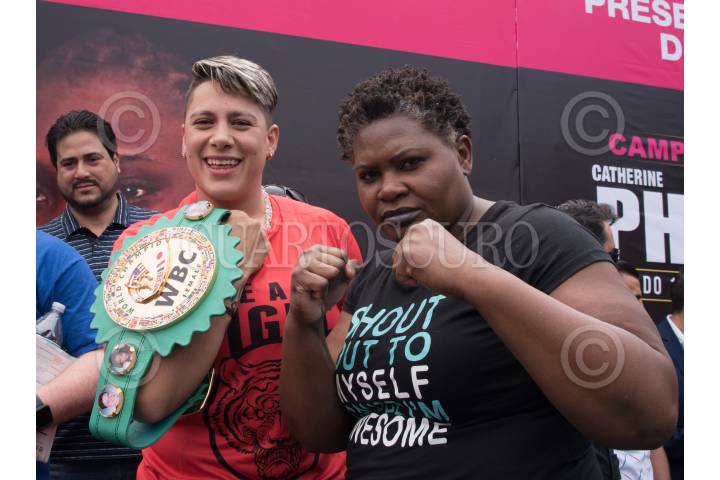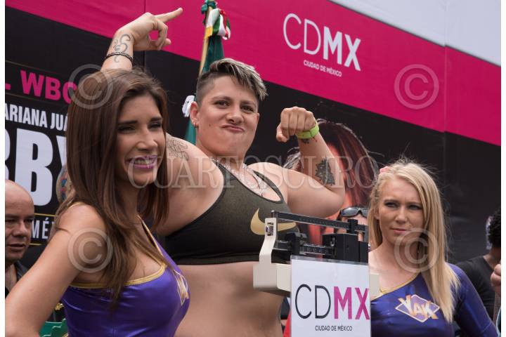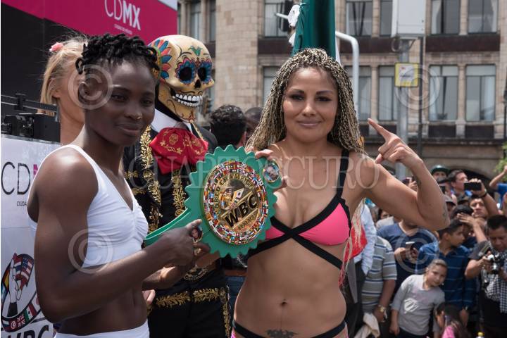 CIUDAD DE MÉXICO, 31MARZO2017.- La mexicana Mariana “La Barbie” Juárez, y la africana Catherine Phiri se enfrentarán el dia de mañana en el Zócalo capitalino para competir por el campeonato de peso gallo del Consejo Mundial de Boxeo. FOTO: TERCERO DÍAZ / CUARTOSCURO.COM