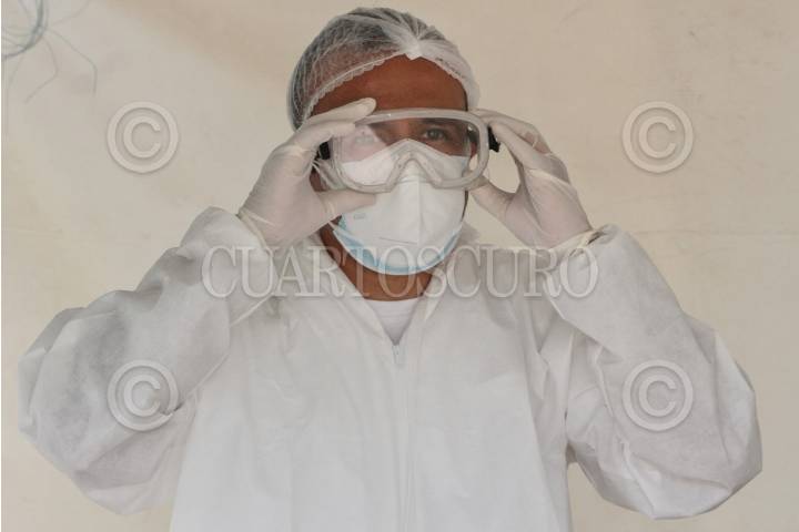 Doctor y paciente momentos antes de la prueba para la detección de COVID-19.